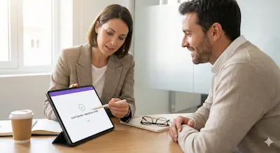 Vous accédez à votre espace sécurisé pour déposer les pièces (courrier reçu, contexte). L'avocate analyse le tout, rédige la réponse officielle et l'envoie à la société de recouvrement. Vous recevez une copie pour vos archives.